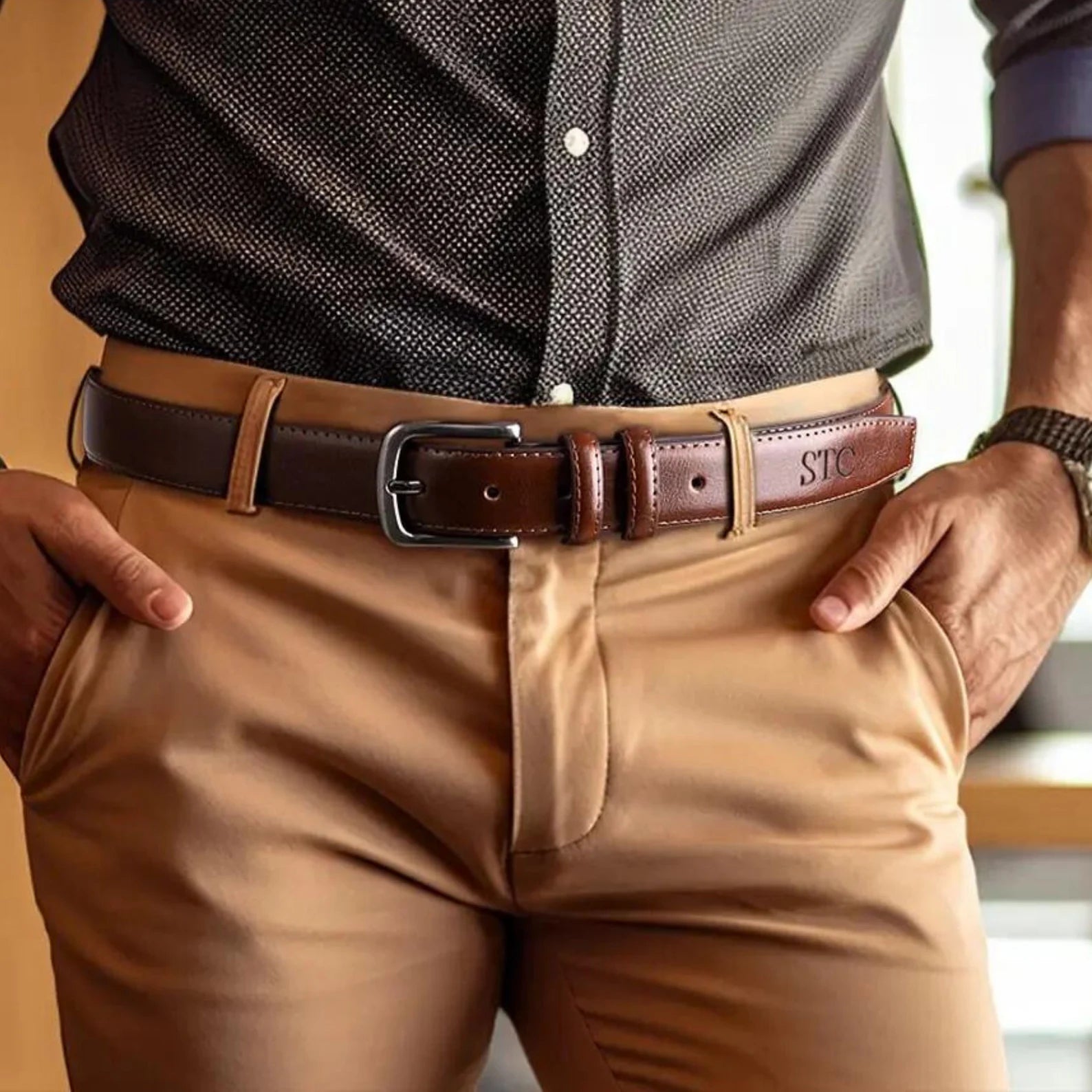 🧑💼 Personalisierter handgefertigter Ledergürtel im Retro-Stil – sowohl für Business als auch für die Freizeit geeignet.