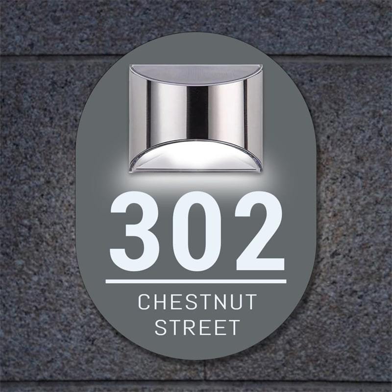 Customize with your door number and street name for a unique touch. Choose between light-sensitive or motion-sensitive options for tailored lighting control. The Brushed Aluminum Solar Light harnesses sunlight, creating a warm and inviting ambiance as dusk falls.